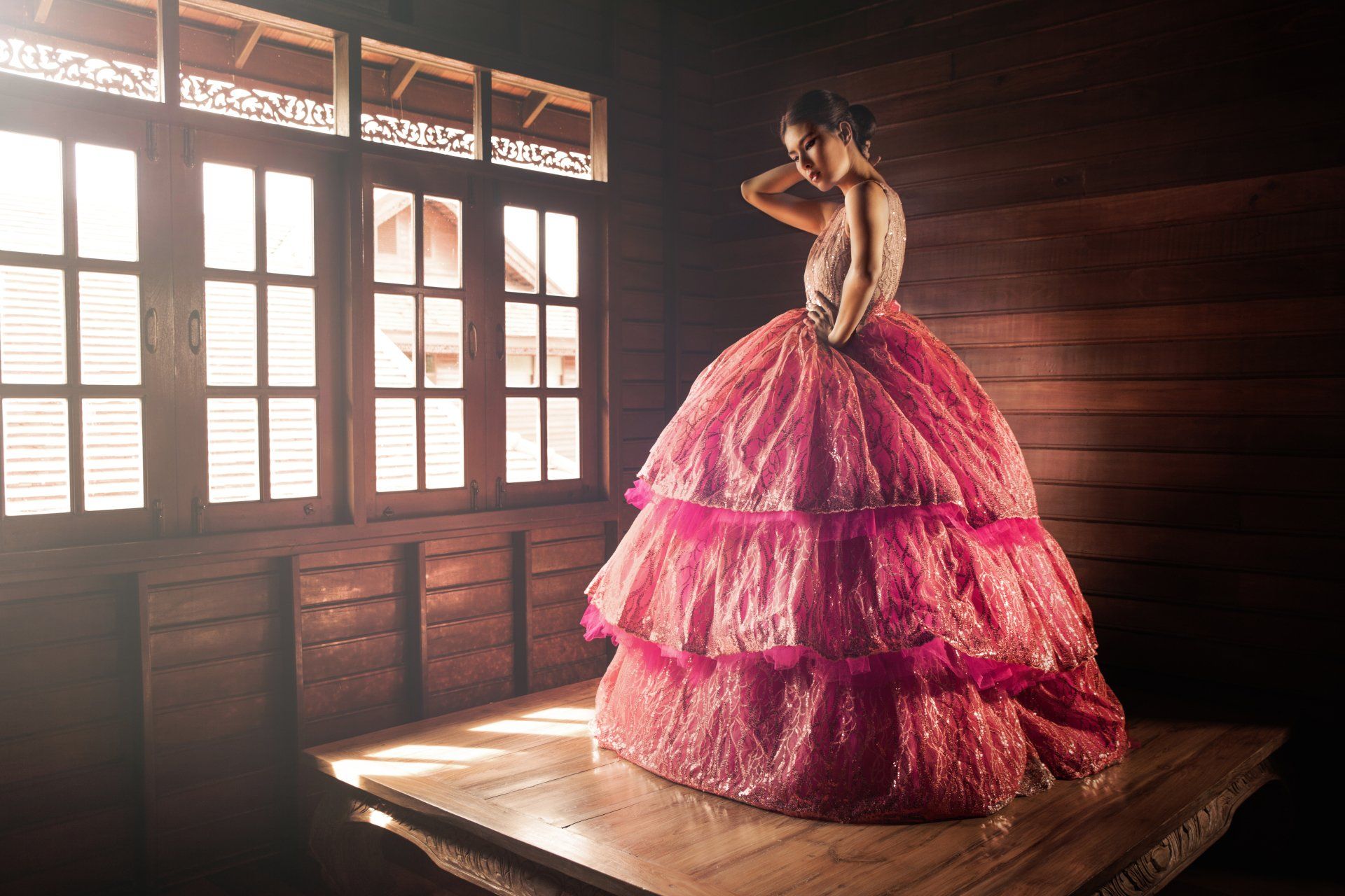 The highlight of a Thai expedition centered around fashion, the royal workshops housing the Queen’s weaving métiers open their doors to us. It is in these places that the traditional silks used in the creation of the Majesté and Rose d'Avril gowns were conceived. After crafting them in France, Romuald Bertrand returns to the origins of the creation to immortalize them.